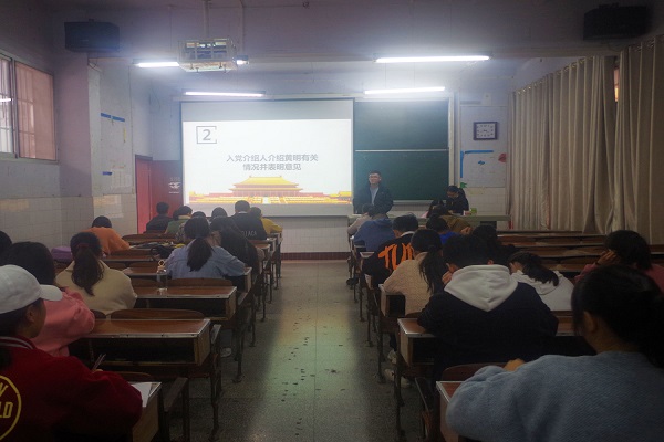 本网讯(通讯员 陈竞硕 黄傲雪/文 文杰/图)11月5日,我院学生党支部在2105教室召开接收预备党员大会。会议讨论关于李鑫、黄明、曾磊、钟芳芳、陈玲芝五名发展对象申请转为预备党员事宜。我院学生党支部书记张艺馨、组织委员覃昕、宣传委员刘恒、纪检委员彭召元,史伯安及学生党员、预备党员参加会议。