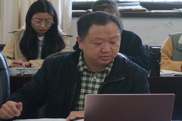 本网讯(通讯员 向建/文 冷中茗/图)11月12日,我院教职工、学生党支部在院会议室开展以“弘扬抗疫精神 凝聚中国力量”为主题的党课。我院教职工、学生党支部全体成员到场学习。我院党总支书记张刚担任主讲人。