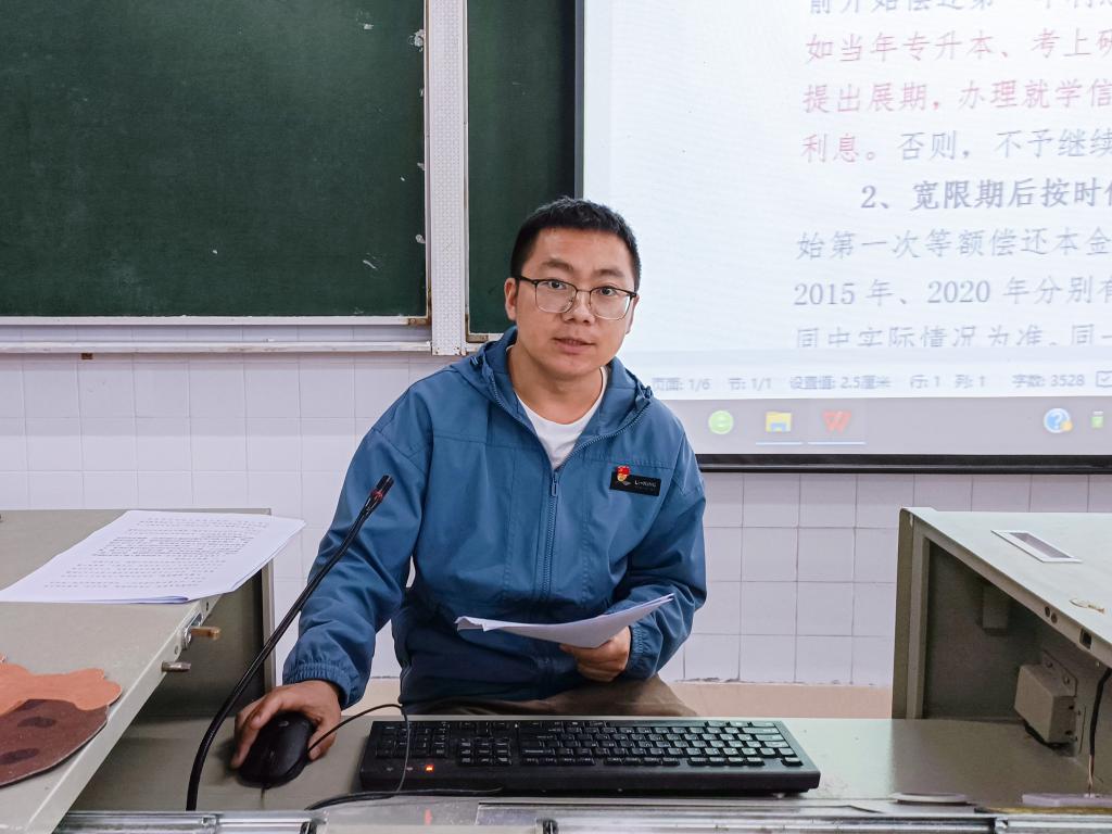 授课伊始,团总支书记彭召元指导学生正确填写省生源地信用助学贷款还款确认书,并对学生所提出的疑问进行耐心细致的回答。确保学生对于省生源地信用助学贷款还款确认书毫无疑问。接着,彭召元阐述生源地信用助学贷款还款要完成“纸质确认”“网上确认”“现场确认”三个过程并强调“网上确认”的重要性。最后,彭召元详细讲述生源地信用助学贷款还款操作流程并进行诚信宣讲,在此过程中,彭召元对学生的还款时间以及利息进行了详细的讲授并说明个人征信的重要性,进一步加强大学生对诚信的理解,树立正确诚信观。