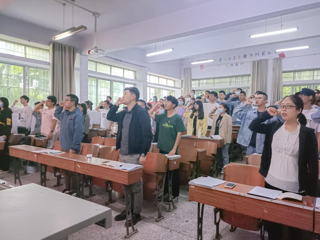 活动伊始,全体党员缴纳党费,由张艺馨带领重温入党誓词,学生党员徐永瑞带领与会成员诵读《党章》第三章第十九条、第二十条、第二十一条和第二十二条相关内容。而后,刘恒组织学习《4月25日习近平在中国人民大学考察时的重要讲话精神》,他引用习近平总书记的讲话内容:为谁培养人、培养什么人、怎样培养人始终是教育的根本问题。提出要坚持落实立德树人根本任务,扎根中国大地办大学,走出一条建设中国特色、世界一流大学的新路。紧接着,覃昕带领学习《习近平谈家庭家教家风建设》及《中华人民共和国家庭教育促进法》,她结合七一勋章获得者瞿独伊的事例谈到,优良党风带动民风社风,发挥优秀党员干部道德模范的作用,把家风建设作为领导干部作风建设重要内容。随后,彭召元领学中共中央印发《中国共产党支部工作条例》,强调党支部是党的基础组织,必须把党支部建设放在突出位置,加强党支部标准化规范化建设。紧接着,张艺馨组织学习中共中央印发《中国共产党基层组织选举工作条例》,她提到条例的制定和实施对于巩固党长期执政的组织基础具有重要意义。接着,由学生党员陈俊潮带领学习中共中央国务院印发《信访工作条例》。