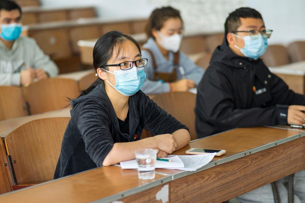 学生党支部成员及学生代表于2207教室观看二十大开幕式(许智玮/摄)