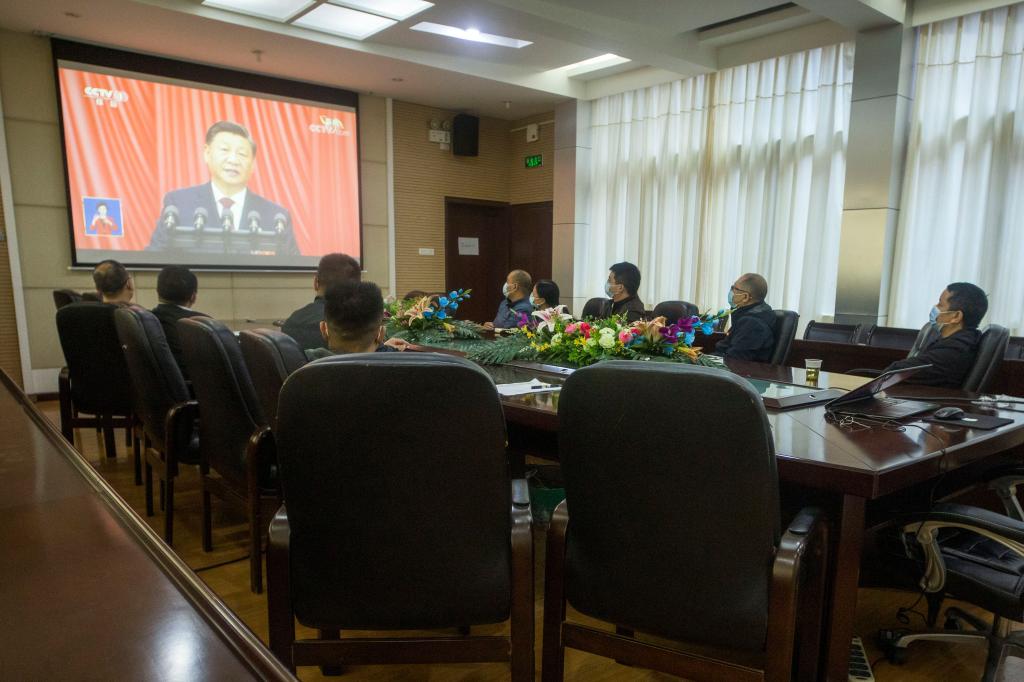 跟随习近平总书记的讲话,与会成员认真观看,深切感悟,了解了我国过去五年在经济、政治、社会、文化、生态环境等各个方面的发展状况、所获得的伟大成就以及未来祖国的发展蓝图,接受了一次精神上的洗礼。
