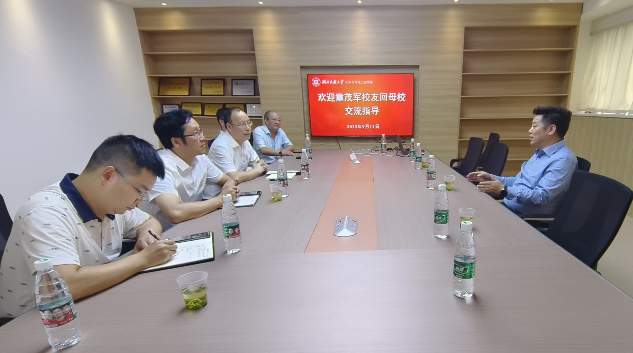 911日,化工工艺专业1994级校友、广东天承科技股份有限公司董事长童茂军应邀回母校访问。我院党总支书记桑秋章、院长李国祥、党总支副书记刘应煊、副院长胡盛在学院206会议室接待童茂军,并进行充分交流。