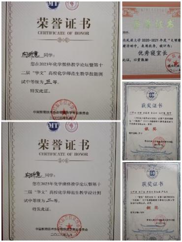 向圻意,男,共青团员,湖北恩施人,我院2020级化学专业学生。荣获第八届中国国际“互联网+”大学生创新创业大赛校赛金银铜奖各1项,2023年化学微格教学论坛暨第十二届华文高校化学师范生教学设计二等奖,教学技能三等奖,2022-2023学年校级三等奖学金、学业进步奖学金,荣获我校2021-2022学年“三好学生”、2020-2021学年“优秀寝室长”等荣誉称号。曾任我院组织纪检部副部长。