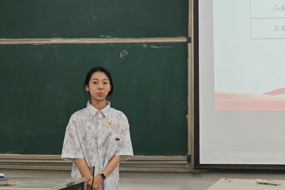 22级化学专业向立分享从一名学生组织干事到成为主席团成员的工作经验,她以“站在树上的鸟相信自己的翅膀”激励大家以深耕和实干精神努力拼搏。