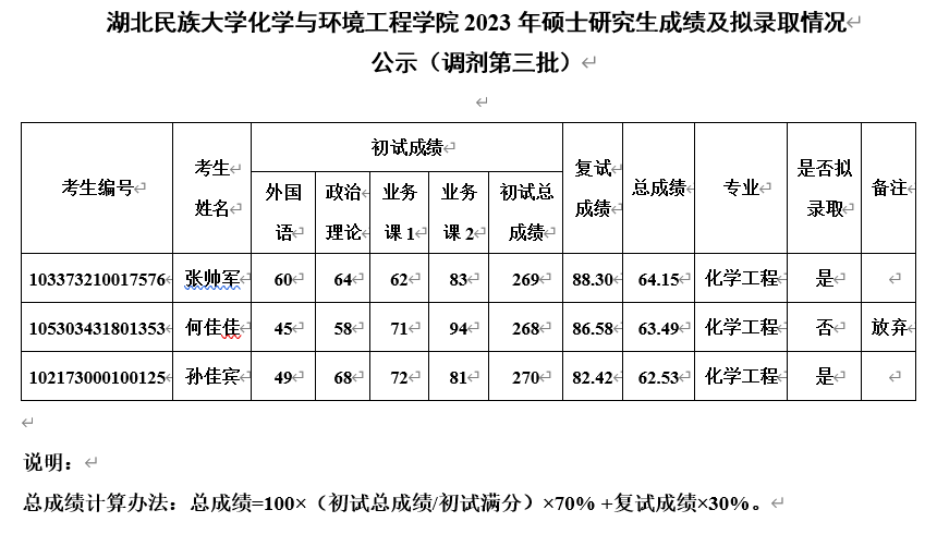开云电竞官方网站入口化学与环境工程学院2023年硕士研究生 招生考试复试名单(调剂第三批)