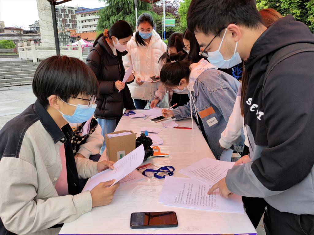 本网讯(通讯员 喻婷 吕婷/文 赵江曼 李彩兰/图)4月16日,我院在大学生广场、数统学院门口空地、修远楼空地、民族体育场、西苑超市门口空地五个地点开展以“吾心系团,重返长征”为主题的纪念共青团成立一百周年活动。此次活动面向我校全体师生。