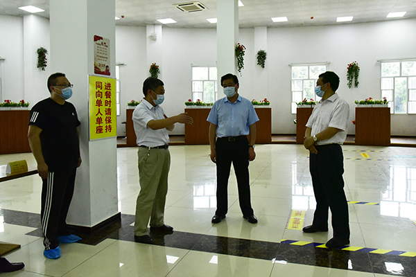 柯俊一行深入食堂、教室、宿舍、留观点、报到点等多处重点区域查看疫情防控各项工作,并现场指导校园入口和医务室隔离通道设置,提出整改意见。