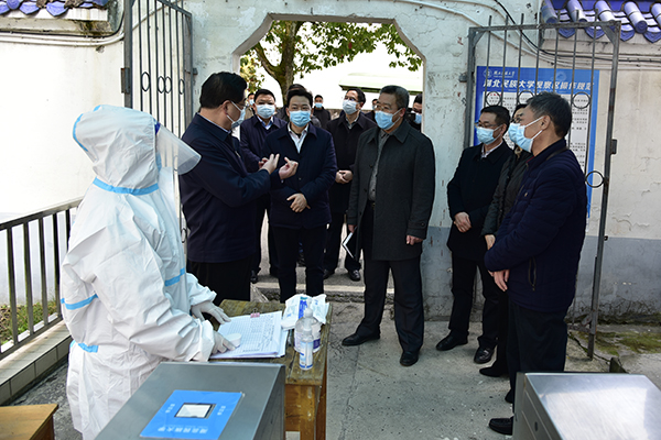 本网讯 3月4日,副省长、州委书记柯俊到我校调研开学运行情况,指导疫情防控工作,州政协主席、我校党委书记吴建清,党委副书记、校长顿祖义,州委常委、州委宣传部部长张淼,一级巡视员郑开国,副州长高敬佩,我校党委常委、副校长祝建波,副校长秦群燕陪同调研。
