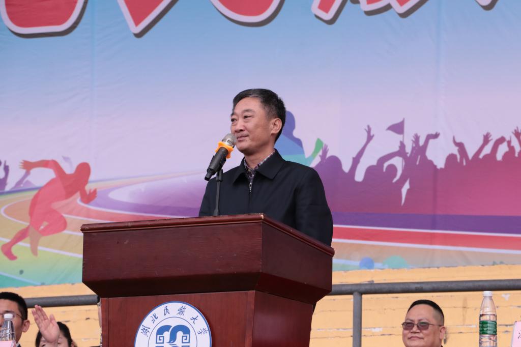 邓磊致开幕辞。他表示,运动会是我校贯彻“全方位育人”教育思想的重要载体,也是全校师生体验激情人生的重要良机;运动会是一场体育竞技的盛会,也是一堂挑战自我、勇攀高峰、实现梦想的成长课程;运动会是广大师生展示自我风采的舞台,也是促进相互融合交流的平台。他希望全体运动员和裁判员秉承“锻炼身体、增强体魄”的宗旨,发扬“更快、更高、更强”和“团结、友谊、进步”的奥林匹克精神,团结协作、不断超越、创造出优异的成绩,使赛事真正成为一次加深友谊、团结鼓劲、互相学习、开拓前进的体育盛会,在运动中展现民大人“顽强拼搏·勇于挑战”的风采!