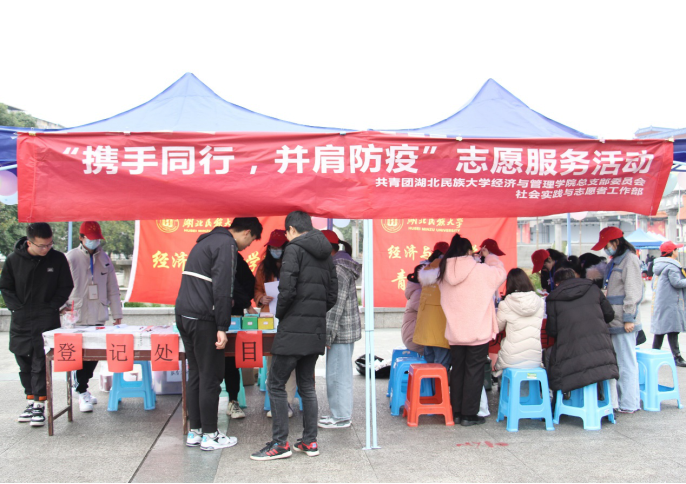 本网讯(见习记者 许林珍 李瑶/文 记者 苏曈 刘玉琳/图)为增强大学生在疫情防控时期的防疫意识,2020年11月29日,经济与管理学院举办以“携手同行 并肩防疫为主题的志愿服务活动。该活动在大学生广场及图书馆楼下两处举办,共有40余名志愿者参与。