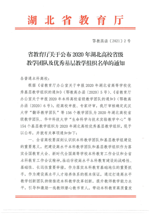 根据湖北省教育厅发布的《关于公布2020年湖北高校省级教学团队及优秀基层教学组织名单的通知》,开云电竞官方网站入口经济与管理学院旅游管理专业应用型人才培养教学团队获批为湖北高校省级教学团队。在这次省级教学团队及优秀基层教学组织名单中,仅我校和武汉商学院旅游管理系获此殊荣。
