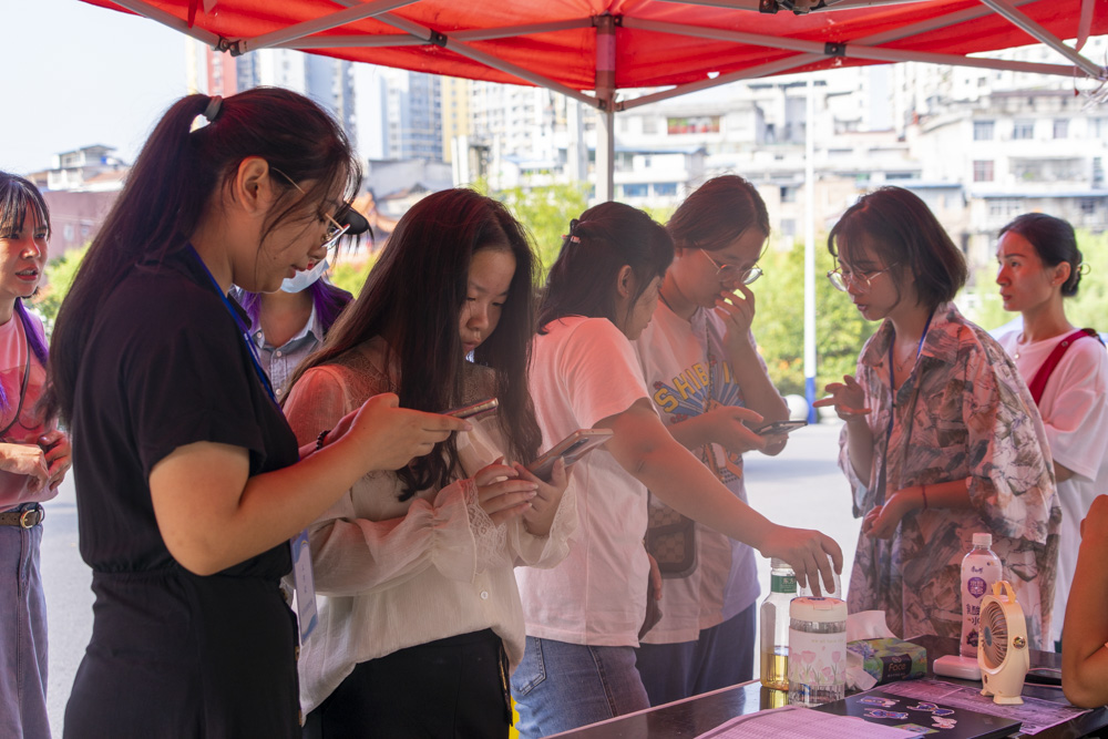 志愿者为新生解答疑问 周隆宇/摄