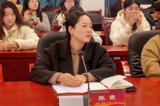 陈霞致辞。她首先对各位嘉宾的到来表示欢迎,并指出学院开设ACCA方向班是深化人才培养改革、对接行业国际化需求的重要举措。同时,她对ACCA方向班学子提出三点期望:第一,虚心求教,互助共赢。她鼓励学生珍惜此次交流机会,以谦逊态度向行业专家请教,并通过组建学习小组、分享经验等方式,在互助协作中共同进步;第二,志存高远,笃行不怠。她希望学生将ACCA学习视为提升个人价值、贡献社会发展的重要阶梯,培养国际化视野与职业责任感;第三,勤学善思,学用合一。她强调,学生要牢牢把握实训机会,积极将理论知识应用于实践,提升解决实际问题的能力。