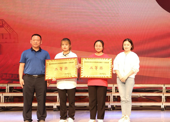 本网讯(记者 赵依婷/文 尹依伊 熊海婷/图)2021年6月4日,我校思政课实践教学合唱比赛在音乐舞蹈学院演播厅举行。经济与管理学院带来歌曲《一二三四》,四位身着作训服的旗手脚踏正步、手举旗帜,展示军营风采,演唱者声音整齐划一,歌声铿锵有力,振奋人心;本次活动旨在庆祝中国共产党建党一百周年,激发学生爱党爱国的热情,接受红色精神的洗礼,丰富校园生活。(责任编辑 杨彩芬)