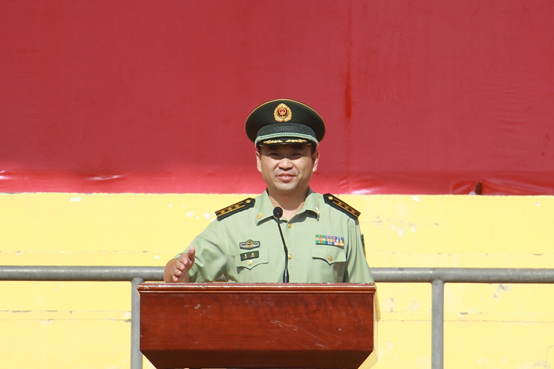 中国人民武装警察部队恩施支队队长宋强作军训动员讲话 李兰/摄