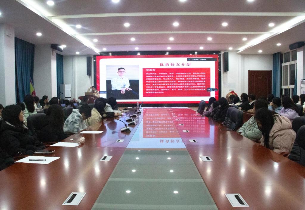 本网讯(见习记者 罗爽 刘庆怡/文 熊邓炀/图)2023年12月14日,经济与管理学院联合一站式学生社区举办的第三期校友·经管讲坛在经管楼附303会议室举行。经济与管理学院2023级会计学专业全体学生参加本次讲座,经济与管理学院会计学系副主任刘洁玫担任本次活动主持人。
