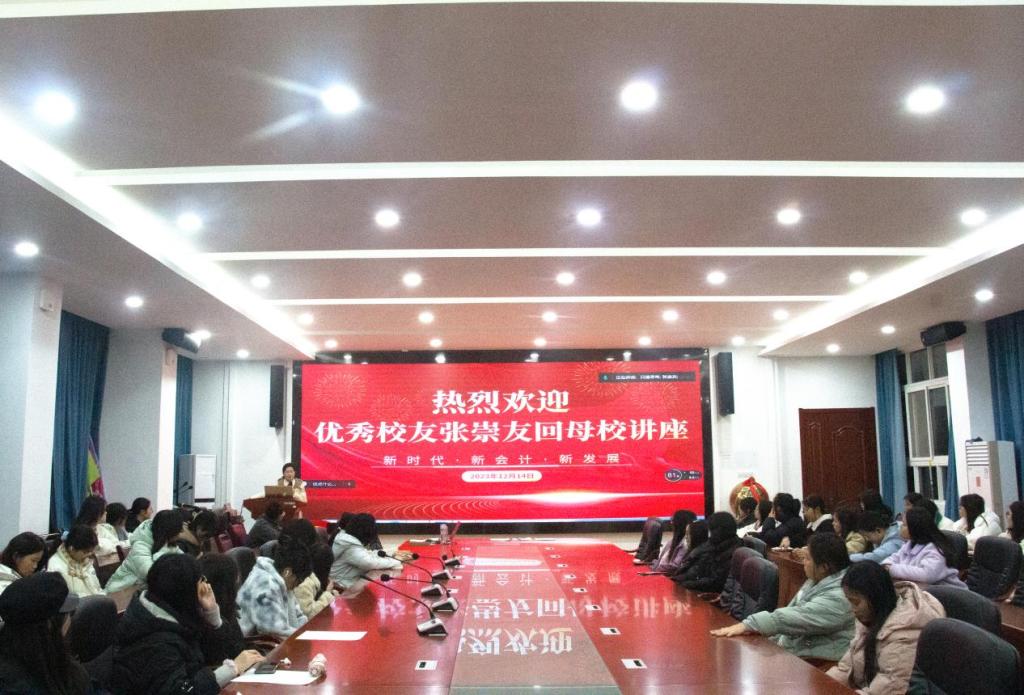 张崇友围绕“新时代新会计新发展”的三个“新”开展专题讲座。新时代下,从时代性、环境变化和技术发展三个角度引出我们会计发展的新,也就是新会计。新会计,新在哪里?他从专业方向、行业标准、专业内涵和技术应用四个角度阐述了这个新,并由此引出了我们会计要如何实现新发展。首先是核心思维的转变,其次是技术与路径的落地,最后是数据能力的加持。那么未来该怎么办?他用毛姆的一句话——“人生处处是起点,无论什么时候开始都不算晚”引入话题,向学生推荐与会计专业相关的书籍,鼓励学生培养阅读意识,加强自身专业的学习,为应对未来挑战打下坚实基础。