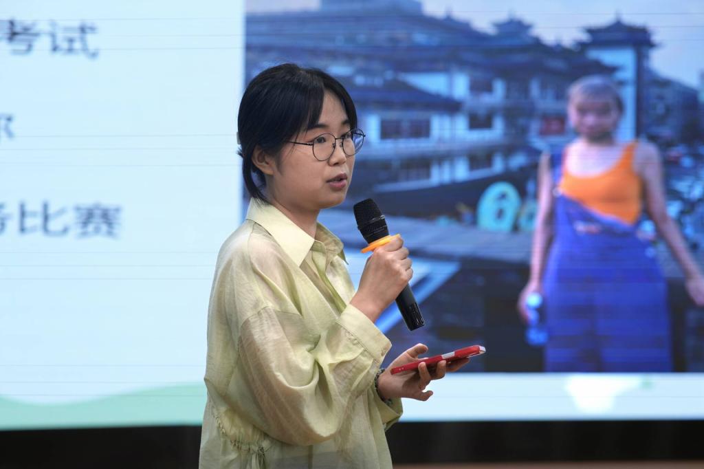 考研优秀代表陈佳一做分享。她表示在选择专业和学校时,应多利用网络数据库寻找专业信息,找到适合自己的方向。同时,要把握好学习进度,合理规划时间,确保复习效率。