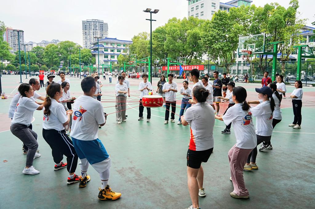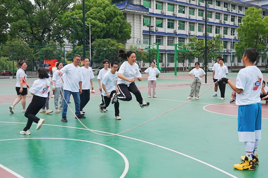 全体教职工身着统一的运动装,以饱满的热情和精湛的协作,展现团队凝聚力与运动魅力,为校园增添一道亮丽风景线。