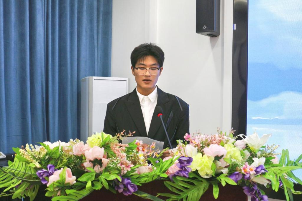 学生干部代表黄国轩发言。他表示,作为经济与管理学院的学生干部,在过去的一年里,经历了许多挑战和机遇,也取得了不少成绩和进步,学生干部的工作永无止境,仍需不断进取、追求卓越。同时,他希望在未来的工作中各成员能以创新为动力、以团结为基石,做到同心协力、携手共进,不断提升自身综合素质和工作能力。