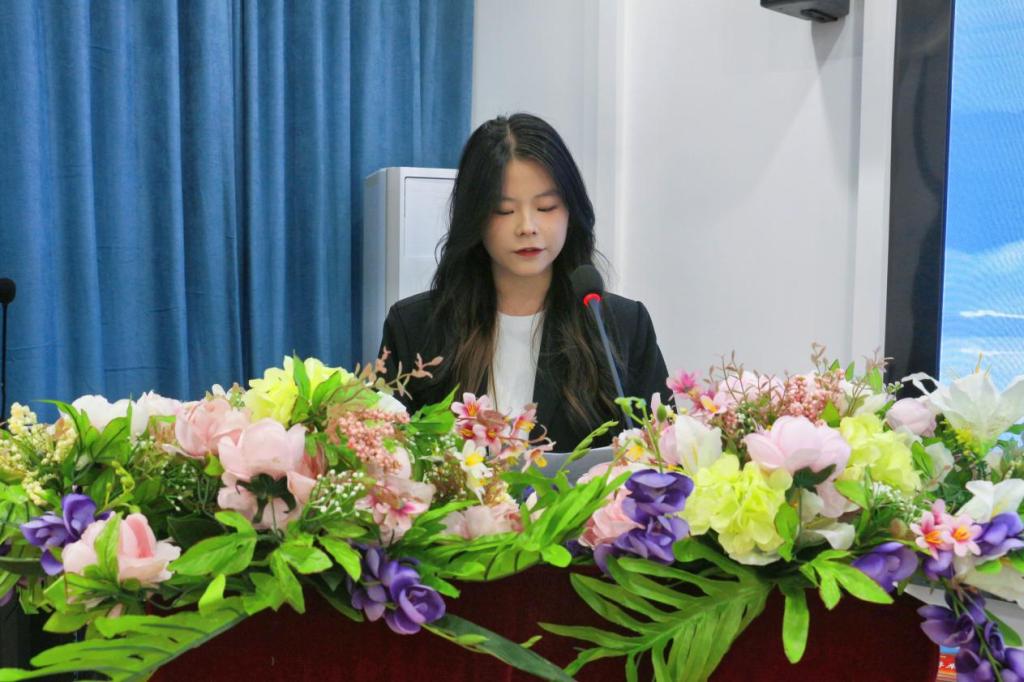 团总支代表舒紫红发言。她首先感谢上一届学生干部的付出,并希望组织成员能以严格的标准和严谨的态度砥砺自我,不忘初心、踏实笃行,用饱满的热情和切实的行动建设更有温度、更有力量的团总支。