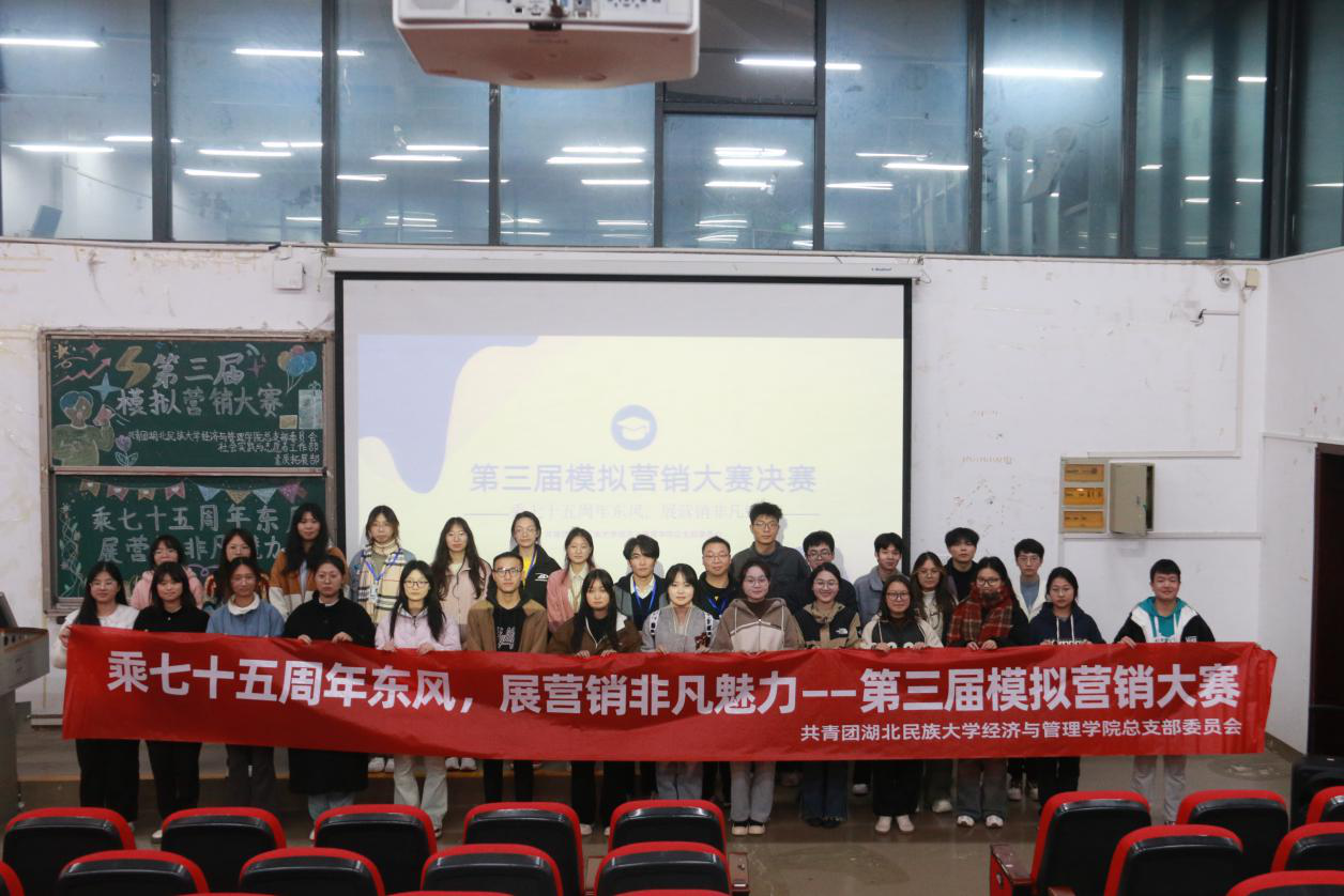 本网讯(记者 刘庆怡 陶君然 见习记者 陈诗淇 冯柯嘉/文 记者 毛莉 见习记者 谭元媛/图)2024年11月21日,经济与管理学院联合“一站式”学生社区以“乘七十五周年东风 展营销非凡魅力”为主题的第三届模拟营销大赛决赛在修远楼5B403报告厅举行。经济与管理学院团总支书记杨睿、学生科辅导员唐桢坤应邀出席本次大赛并担任评委。