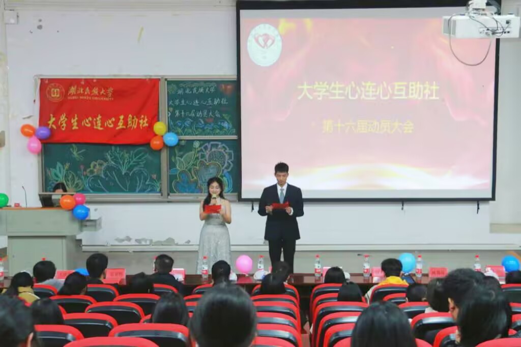 本网讯(见习记者 徐彤彤/文 记者 毛莉/图)2024年11月29日,经济与管理学院大学生心连心互助社第十六届动员大会在修远楼5A207报告厅举行。经济与管理学院团总支书记杨睿应邀出席,大学生心连心互助社第一届、第三届、第十三届、第十四届、第十五届、第十六届干部代表和部分社团成员参加本次活动。