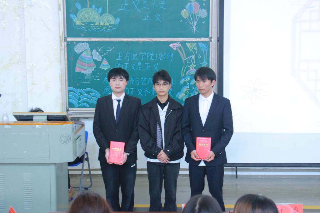 本网讯(记者 刘庆怡/文 见习记者 施瑾/图 余佳怡/图)2025年4月24日,经济与管理学院与医学部联合举办的友谊辩论赛在修远楼5B403教室举行。经济与管理学院优秀辩手陶青青、赵林森,医学部优秀辩手庞震、杨诗妤应邀出席本次比赛并担任评委。最终,正方四辩陈扬和反方四辩易泽铭获得“优秀辩手”称号。