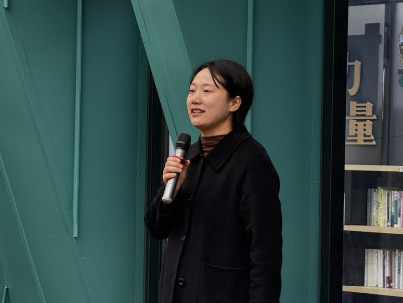 吴珊发言。她以温柔的话语寄语孩子们,强调知识对点亮未来的重要意义,鼓励孩子们保持对世界的好奇与对知识的渴望,大胆提问、认真探索,指出每一次学习尝试都是在为梦想奠基。真挚的寄语赢得了孩子们的热烈掌声,现场气氛温馨而热烈。