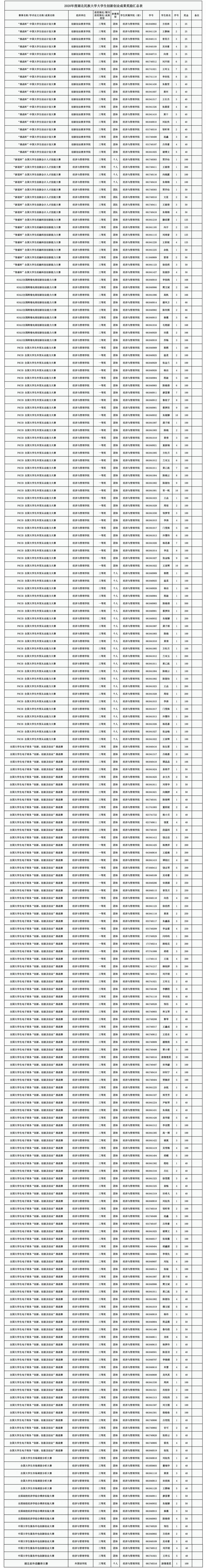 2020年度大学生创新创业成果奖励汇总表