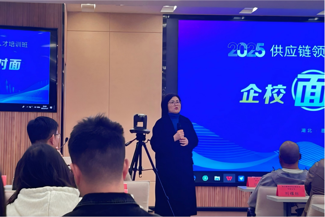 本网讯(记者 吴德一/文)2025年11月7日,湖北省重点物流企业与经济与管理学院联合开展的“企校面对面”交流活动在德智楼远程观摩室举行。多位企业高管应邀出席,经济与管理学院党委副书记张姣蓉、学生科负责人解丽娟,以及学院各专业学生代表参加此次交流会。