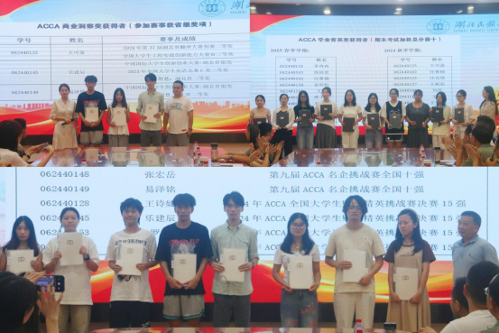 在表彰环节,高顿教育集团嘉宾和经济与管理学院领导依次为获得“ACCA学业精英奖”、“ACCA单科翘楚奖”、“ACCA飞跃之星奖”、“ACCA商业精英奖”、“ACCA商业洞察奖”、“ACCA英语启航奖”、“ACCA专业基石奖”的同学颁奖。