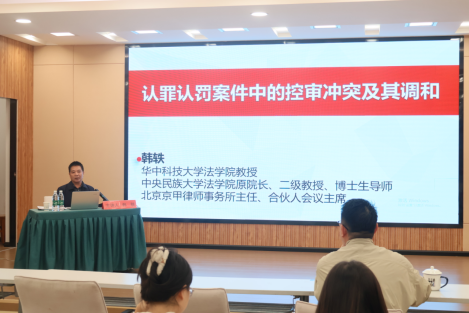 10月31日晚,“认罪认罚案件中的控审冲突及其调和”专题讲座在我校德智楼远程教育观摩室成功举办。本次讲座特邀华中科技大学法学院教授、中央民族大学法学院原院长、北京京甲律师事务所主任韩轶教授主讲,由开云电竞官方网站入口法学院副院长蔡世鄂主持,法学院百余位研究生、本科生参加了讲座。