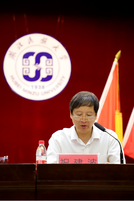 祝建波发表题为《胸怀国家、做一个出彩民大人》的讲话,对全体学生寄予了殷切期望和谆谆教诲,勉励大家要树立远大理想、担当时代责任、勇于砥砺奋斗、练就过硬本领、锤炼品德修为,不负青春,不负韶华,富有中国人的志气、骨气和底气,做一个有理想、有追求、有成就的民大人,真正努力成为一个对社会有用的人,积极投身全面建设社会主义现代化强国的伟大事业。