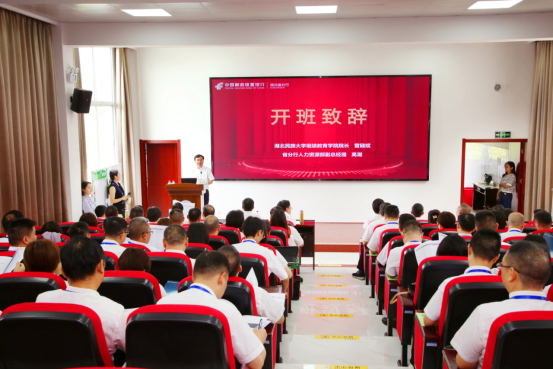 雷随斌致开班辞,对全体学员的到来致以热烈欢迎,介绍了学校在历史沿革、人才培养、社会服务等方面的发展现况及取得的成绩。他指出,举办本次培训,是贯彻落实党的二十大精神的重要举措,对于坚定理想信念、统一思想认识、明确目标任务,提升中层干部管理能力,凝心聚力谱写邮储银行高质量发展新篇章,具有重要意义。希望大家珍惜机会,积极学习,祝愿本次培训圆满成功。高潮代表邮储银行省分行向学校为本次培训所做的各项工作表示感谢,向参训学员提出了学习期间的具体要求。