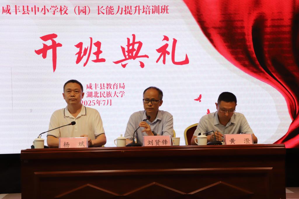 开班仪式上,刘贤锋表示,学院将整合优质教育资源,严把培训质量关,确保学员学有所获。他要求全体学员严格执行中央八项规定精神,筑牢意识形态防线,认认真真参训。学员代表、咸丰县民族实验学校校长胡春艳承诺,将严守纪律、潜心研修,做到学有所思、思有所悟、悟有所得。黄澄勉励全体学员强化使命担当,把培训成果转化为提升办学治校水平的生动实践。