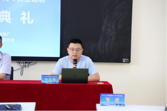 随后,邓高锋代表授课教师解读课程内容。本次培训涵盖手机拍摄技巧、剪辑逻辑及烟草行业场景应用等实战模块,突出理论与实操深度融合的特色,旨在提升学员在实际工作中的新媒体应用能力。