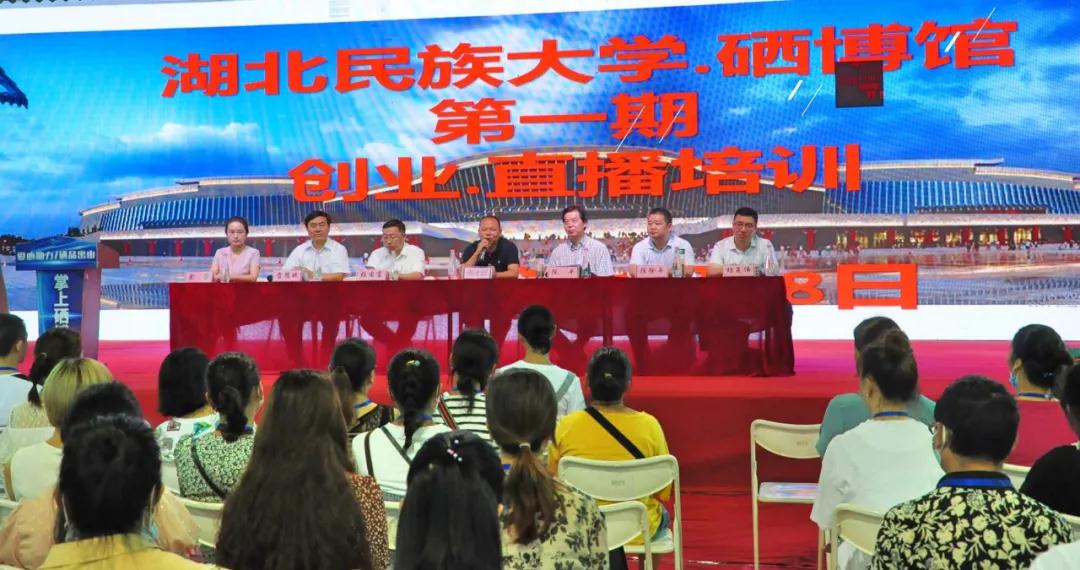 728日,在州人力资源和社会保障局、州硒资源保护与开发中心、州公共就业和人才服务局的指导下,由我校和州文化中心硒博馆共同举办的第一期“千星万红”创业·直播带货培训开班典礼在硒博馆顺利举行。开云电竞官方网站入口继续教育学院院长雷随斌,恩施聚硒商业管理有限公司董事长周才红、总经理张国富,人社部国家级项目培训导师陈平、陈徐平、杨复伟和来自恩施各县市的120余名培训学员出席开班典礼。
