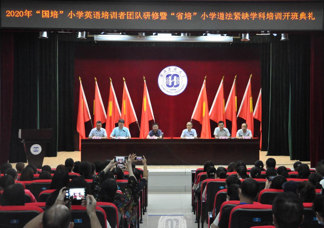 8月20日上午,湖北省2020年“国培”小学英语培训者团队研修项目暨“省培”小学道德与法治紧缺学科培训项目开班典礼在学校行政楼1号会议室举行,这是我校承接实施的湖北省2020年“国培”“省培”第二期培训项目。典礼由考试培训科科长杨斌主持,继续教育学院副院长刘贤锋、恩施市第一高级中学正高级教师尹应睿出席典礼。
