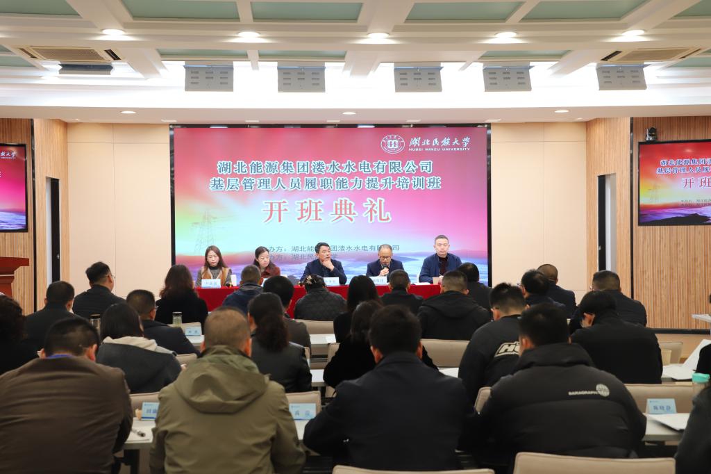 (来源:考试培训科 作者:尹晶晶 审核:刘贤锋)秋尽立冬始,学习正当时。11月19日上午,由我校承办的湖北能源集团溇水水电有限公司基层管理人员履职能力提升培训班在学校德智楼远程教学观摩室举行开班典礼。溇水水电有限公司党委委员、副总经理李少军,人力资源部主任柯元霞,继续教育学院副院长刘贤锋,考试培训科教师尹晶晶出席典礼。典礼由学院考试培训科科长杨斌主持。