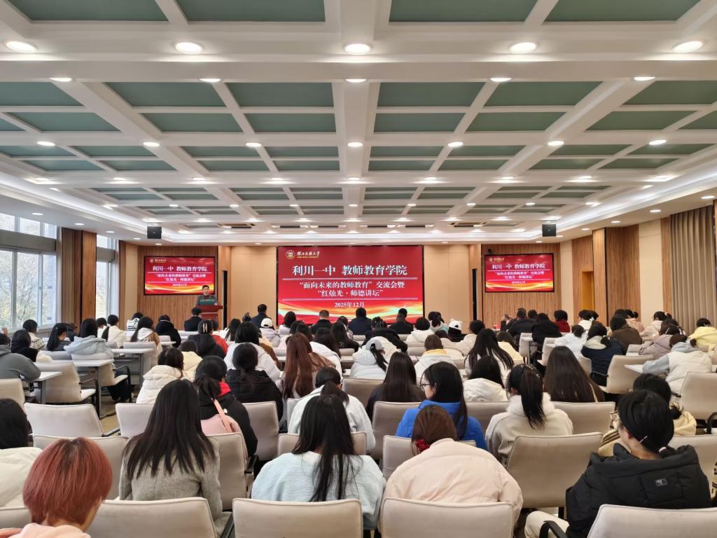 共话“面向未来的教师教育”:利川一中到学院开展交流 本网讯(通讯员 叶雨婷 萨腊瓦特 邓玉权 梁玉琴)12月16日,学院成功举办“面向未来的教师教育”交流会暨“红烛光·师德讲坛”,利川一中校长蒋利、“楚天名师”伍友华及其团队成员曾小红、汪永华、陈余一行受邀出席,学院党总支书记宁华宗、副书记曹骞、副院长郑艺,以及师生代表参加。宁华宗主持交流会。会议围绕“未来教师应该具备的核心素养”“面向未来的优秀教师成长路径”“师德在未来教师职业发展中的核心地位”等话题...