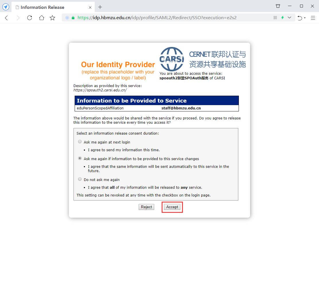 4、同意授权登陆,并接受carsi属性释放。