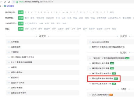 3.进入新界面后找到高校信息素养数据库,点击后即可进入登录界面,用自己e民大账号密码登录即可。