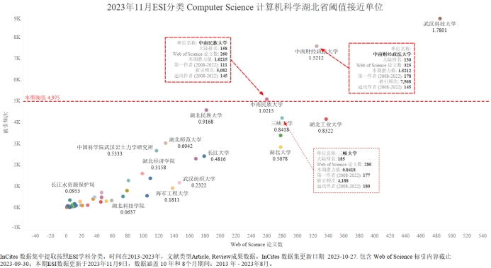 表5:2023年11月我校进入ESI前1%潜力学科(Computer Science计算机科学)发展态势