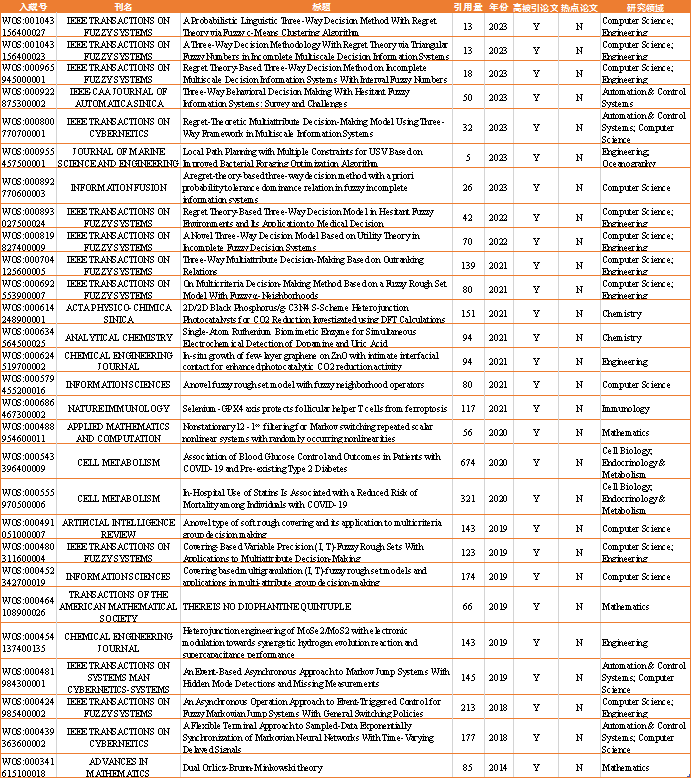 2、 高水平论文(Top Paper)是高被引论文和热点论文的合集。