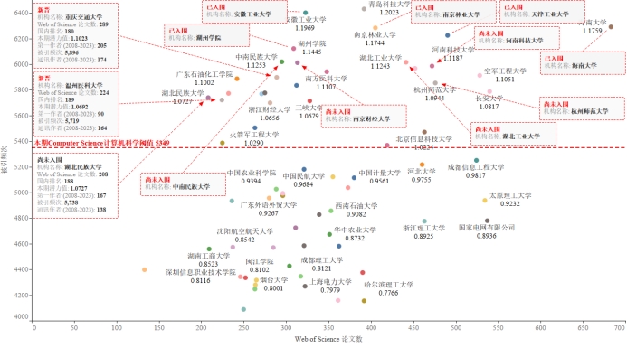 表5 Computer Science 计算机科学中国内地阈值接近单位情况