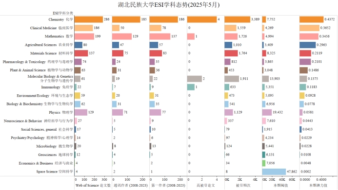 图1我校入围ESI学科前1%学科分布情况(2025年5月)