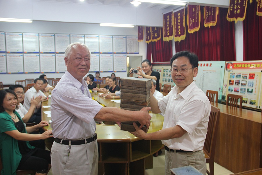 杨大镇捐书代理人离退休第二党支部邬弼彤宣读杨先生捐赠遗愿