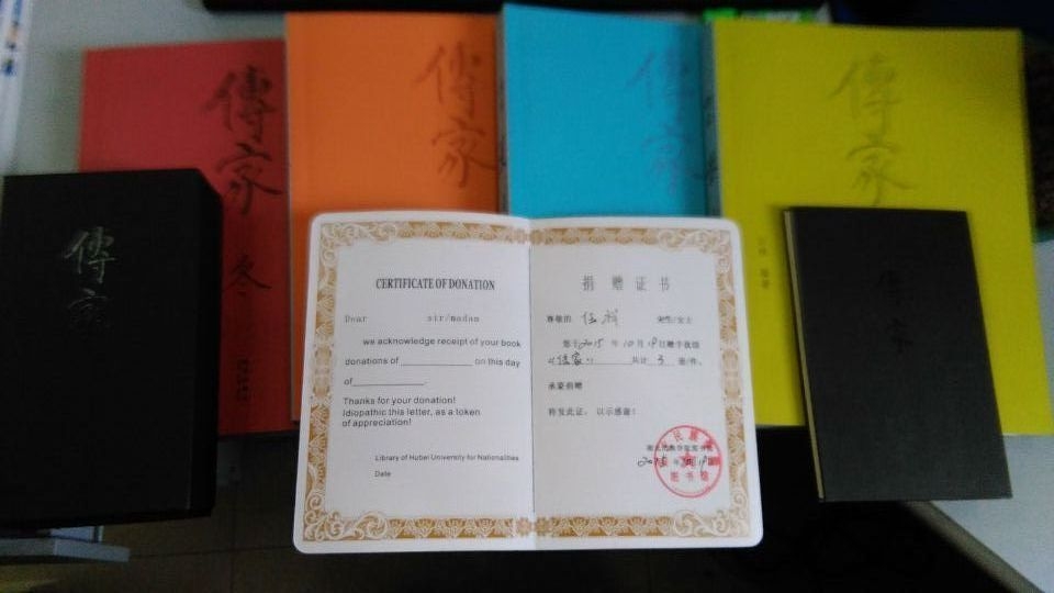 10月16日,台湾任祥女士捐赠我馆《传家:中国人的生活智慧(套装共4册)》一套及附件三样。
